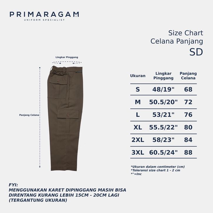 Celana pramuka sd sekolah dasar pdl cargo panjang coklat cokelat laki laki cowok putra cewek putri perempuan