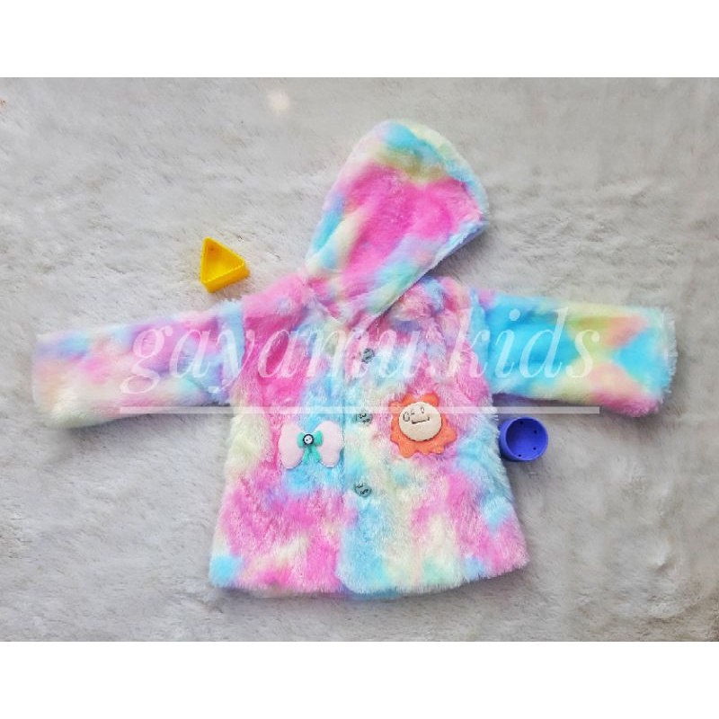 JAKET MANTEL BULU BAYI PEREMPUAN 3-12 BULAN JAKET PELANGI BAYI