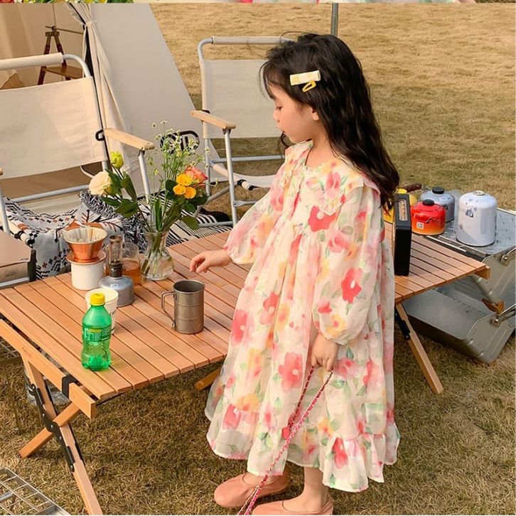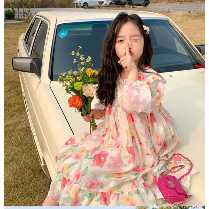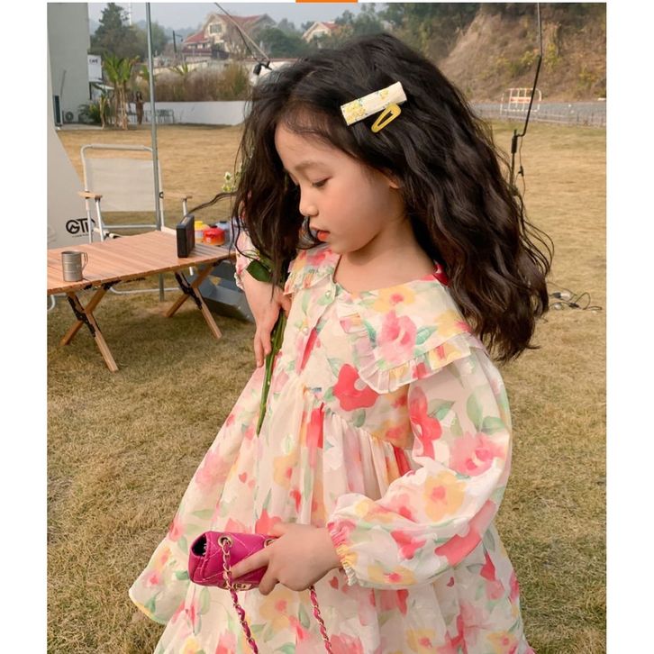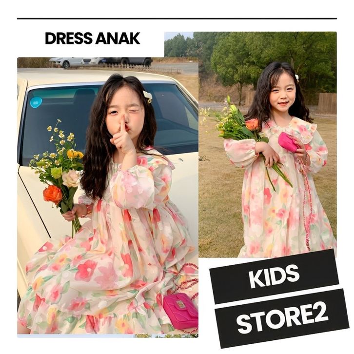 Dress Anak Perempuan DR36 Fashion Korea Peachy Flower Lengan Pendek Usia 3 - 8 Tahun Best Seller Termurah Kids Store2