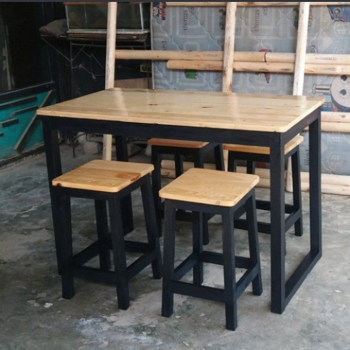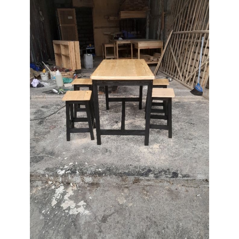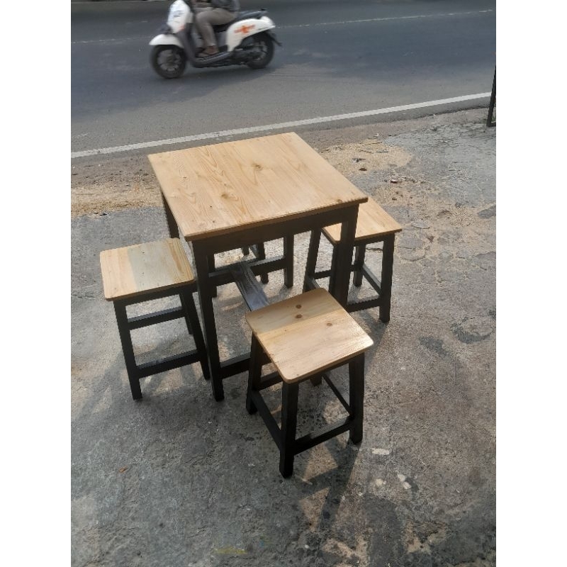 meja cafe set/meja cafe murah 1 meja 4 kursi finising kaki cat hitam