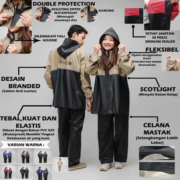 JAS HUJAN SET HOODIE PREMIUM QUALITY BY ORYGO RAINCOAT PRIA WANITA DESAIN TRENDY ANTI REMBES BANYAK VARIASI WARNA