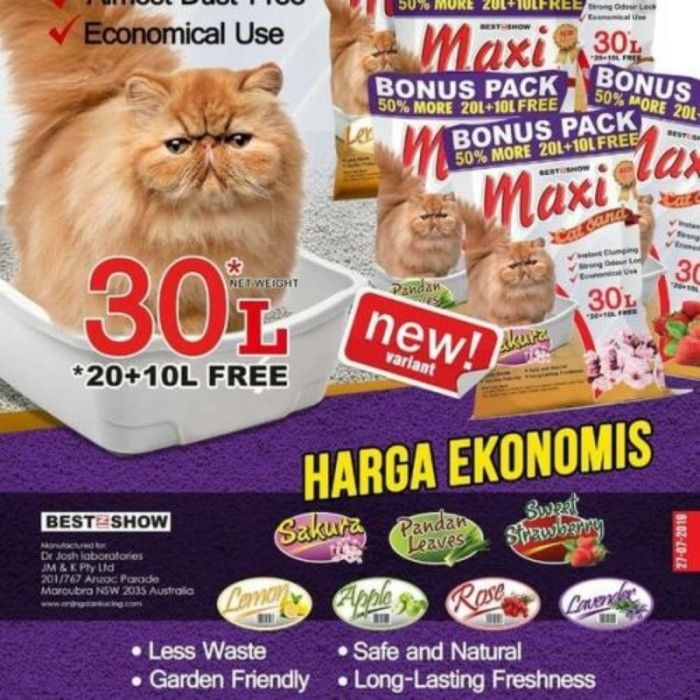 Promo Pasir Maxi Cat Sand 30liter/Pasir Kucing Wangi Gumpal