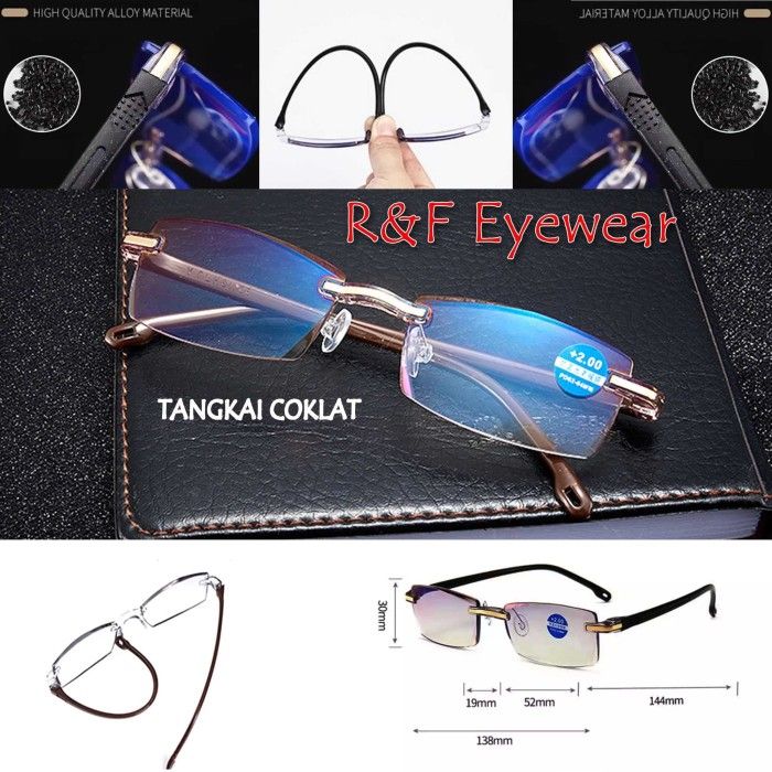 KACAMATA BACA PLUS LENSA BLUERAY ANTIRADIASI UV PRIA WANITA LENTUR NEW - Cokelat, +200 Ready stock