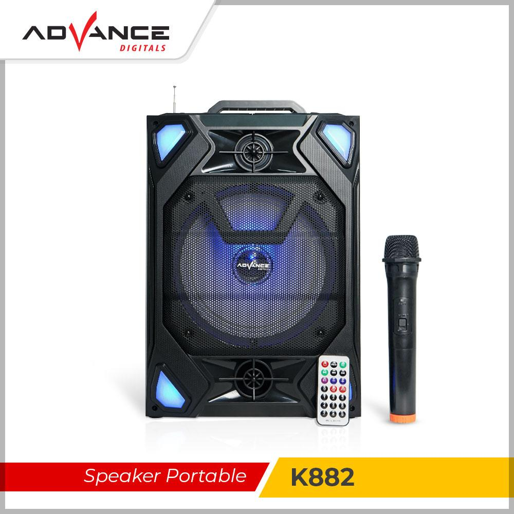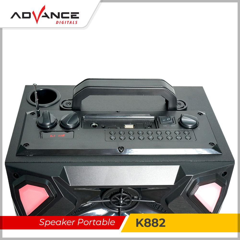 Speaker Advance Bluetooth K882 Speaker Dengan 8" Music Box Portable Sub woofer Karaoke USB Radio