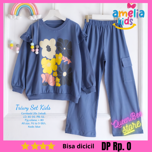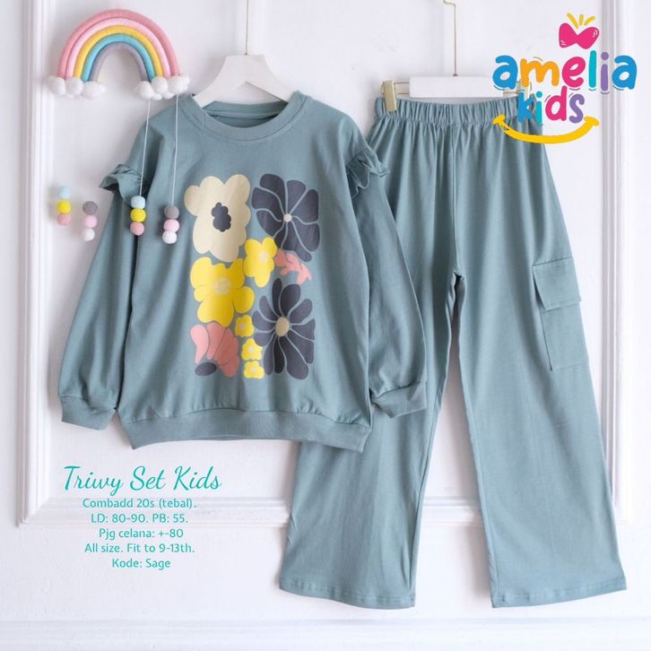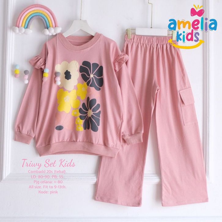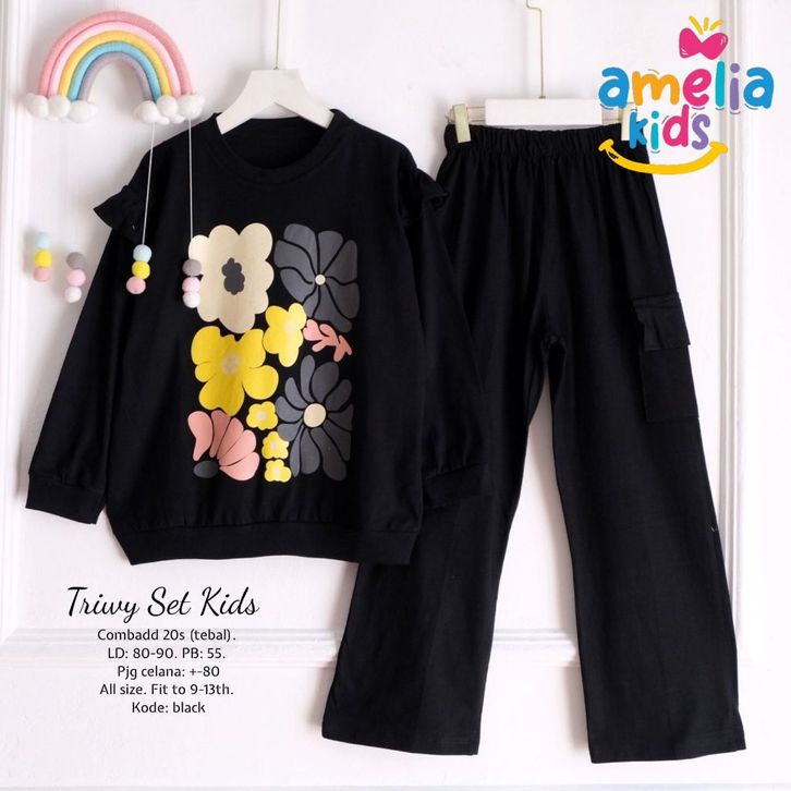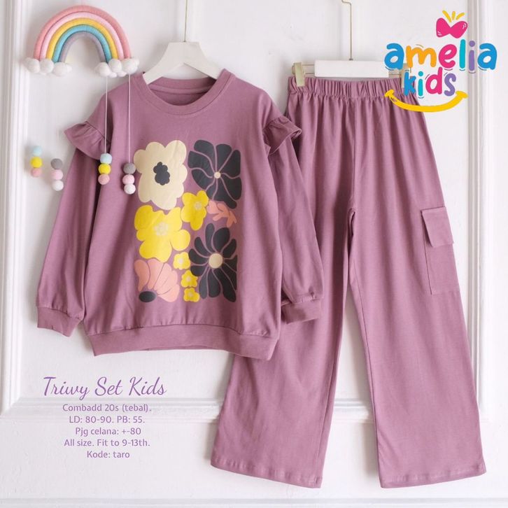 SETELAN ANAK PEREMPUAN MOTIF LUCU TRIVY SET KIDS ONESET KAOS LENGAN PANJANG DAN KULOT CARGO SETELAN ANAK TERBARU MURAH
