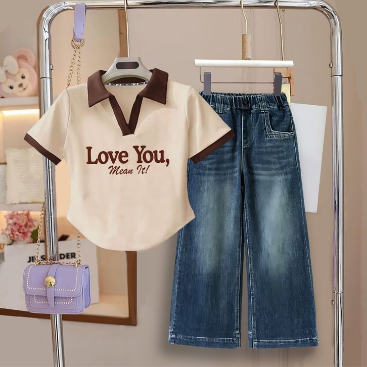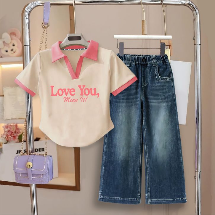 [Star] Setelan Anak Perempuan Umur 1-12 Tahun Baju Oneset Kaos Anak Motif Love You Mean It Model Lengan Pendek Dan Celan