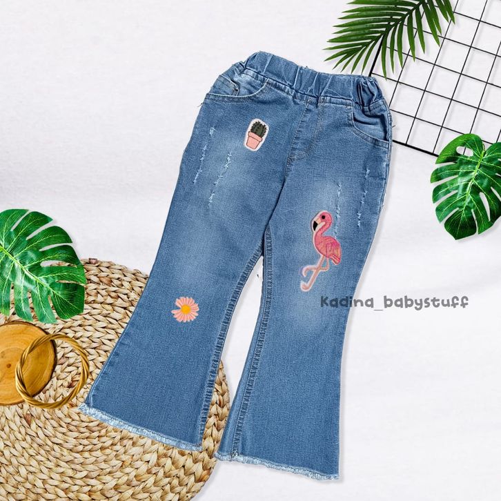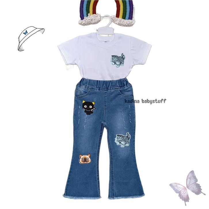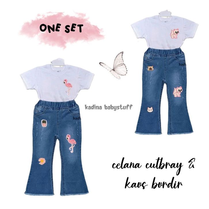 [Star] Setelan Anak Perempuan Usia 1-12Thn Oneset Kaos Lengan Pendek Dan Celana Jeans Cutbray Rawis Motif Bordir Import