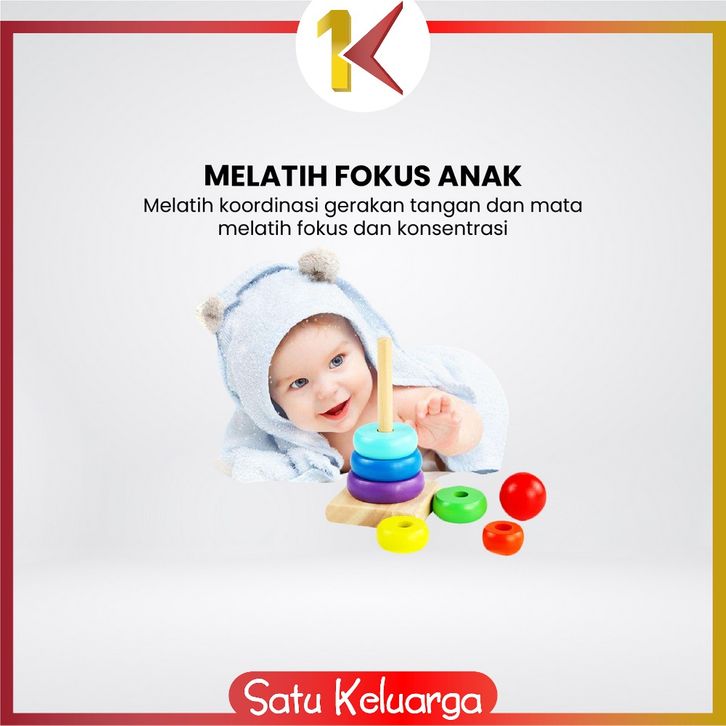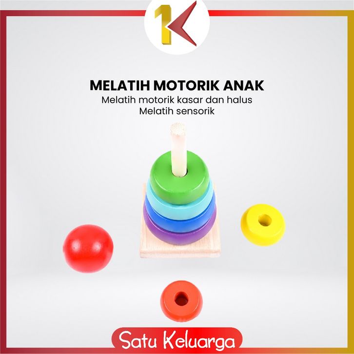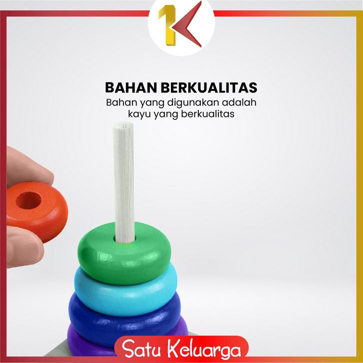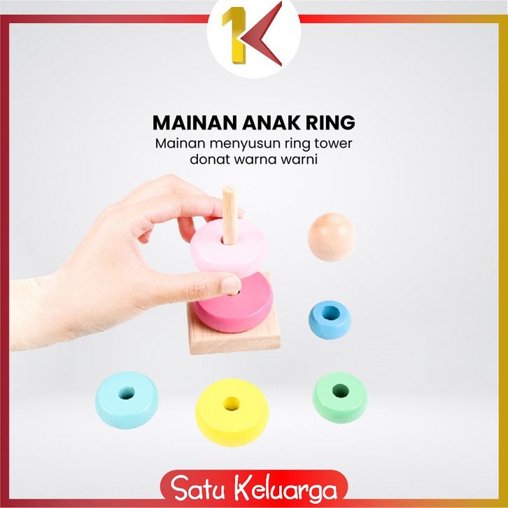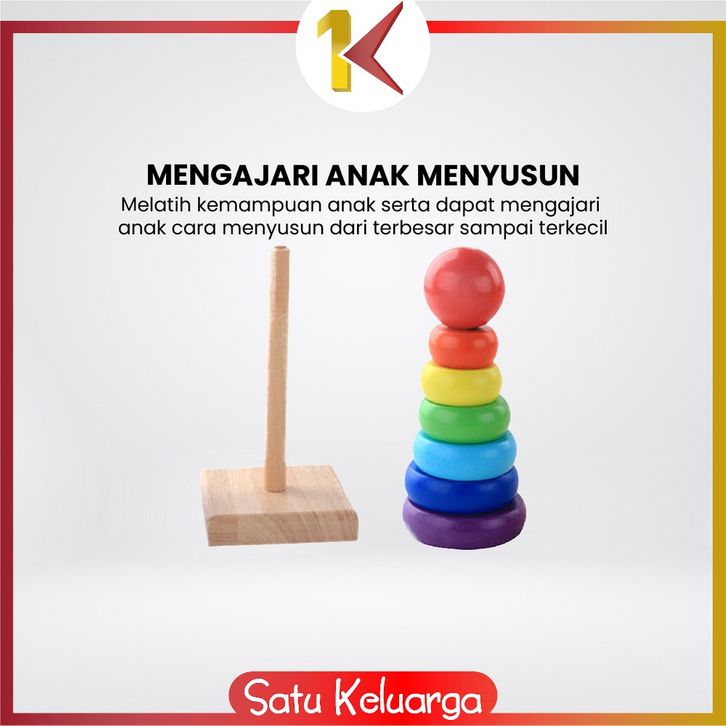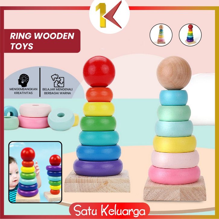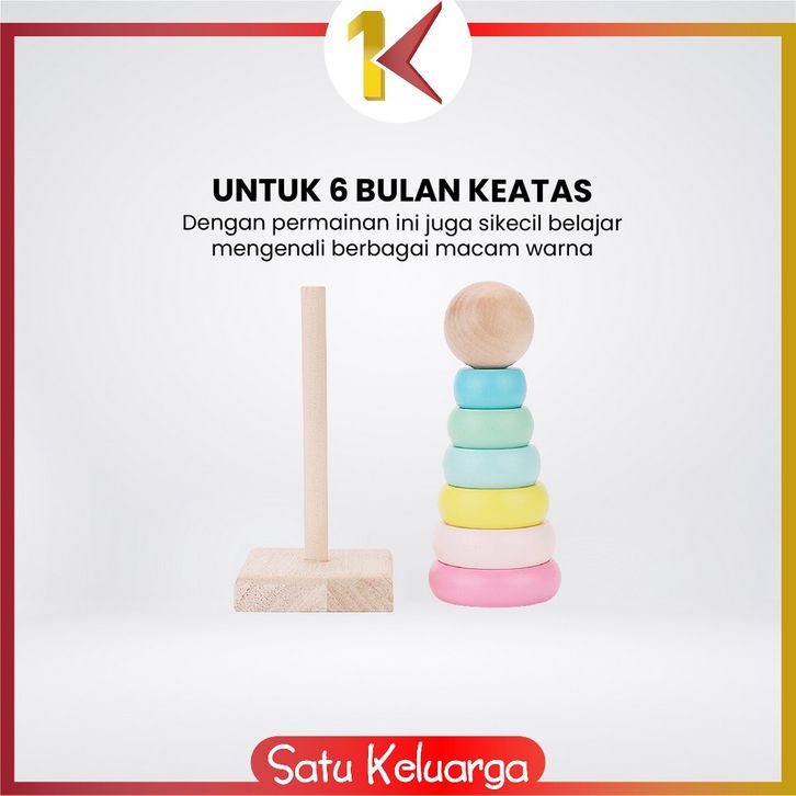 SK-M329 Mainan Anak Ring Donat Kayu Susun Rainbow Unisex / Mainan Edukasi Anak Menara Pelangi / Puzzle Tower Donut