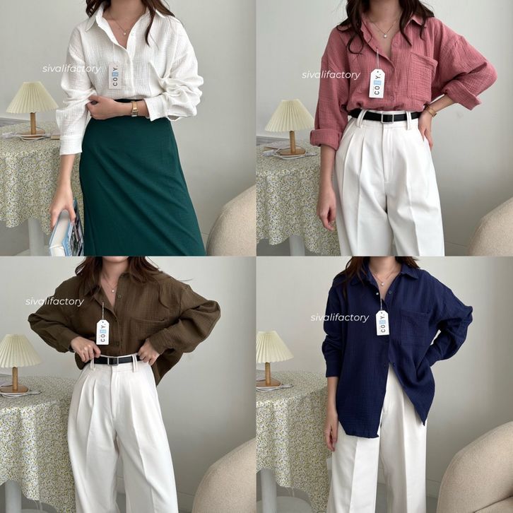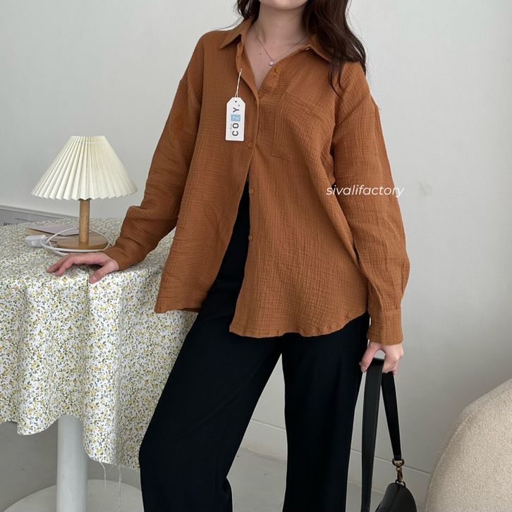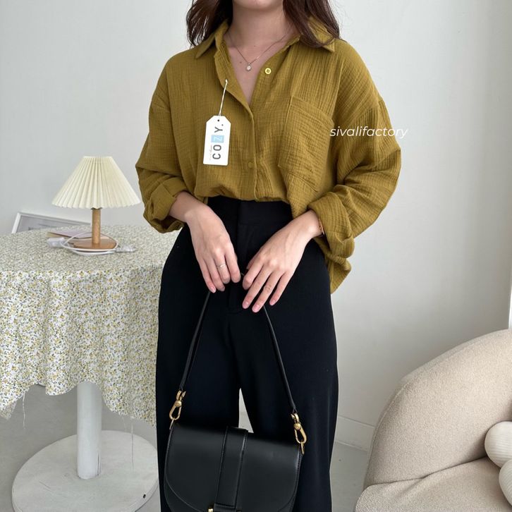 SIVALI Kyra Top || Kemeja Wanita Oversize - Basic Shirt Kemeja Polos Atasan Kerja Lengan Panjang