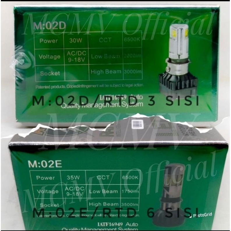 LAMPU LED MOTOR RTD 6 SISI / 3 SISI 100 PERSEN ORIGINAL GARANSI AC DC + KIPAS BOHLAM DOP LAMPU DEPAN UTAMA LED RTD ORI