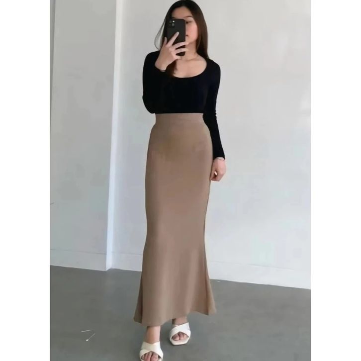 [Star] Lunar Mermaid Skirt Rok Mermaid Wanita Basic Polos Rok Scuba Premium High Waist Bodyfit Elegan Kekinian