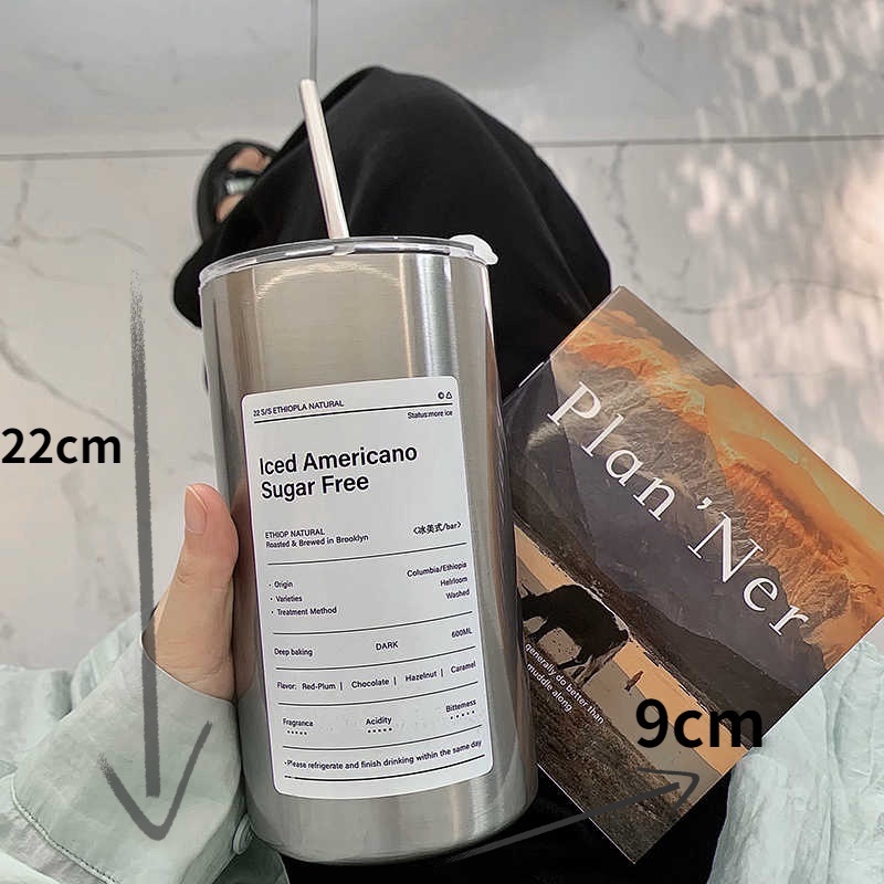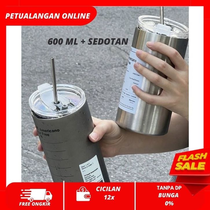 114 BOTOL MINUM STAINLESS / SEDOTAN CANGKIR/BOTOL MINUM KOPI SEDOTAN/CANGKIR THERMOS KOPI/BAHAN STAINLESS STEEL 600ML
