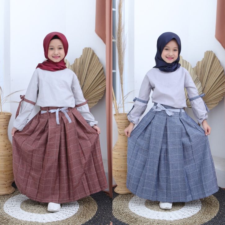 Baju Setelan Anak Perempuan Tanggung Blus dan Rok Naura Set Blouse Simpel Lucu untuk usia 3 - 12 Tahun Kualitas Premium
