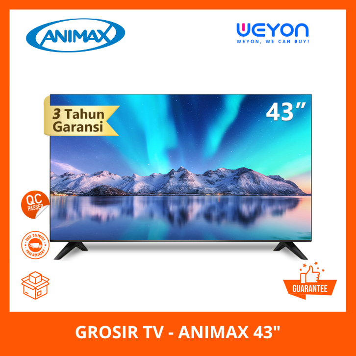 TV SMART 43 INCH ANIMAX BY WEYON ANDROID DIGITAL LED 14.0/OS COOLITA TELEVISI YTB WIFI GARANSI 3 TAHUN MURAH TANPA DP