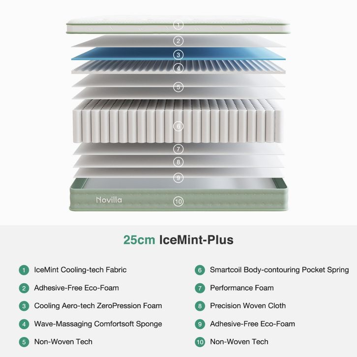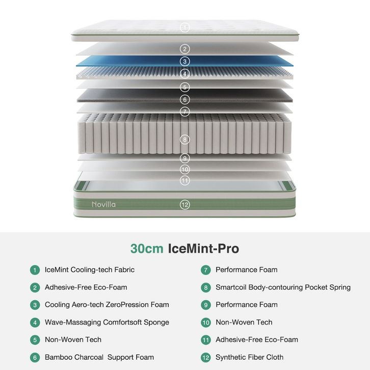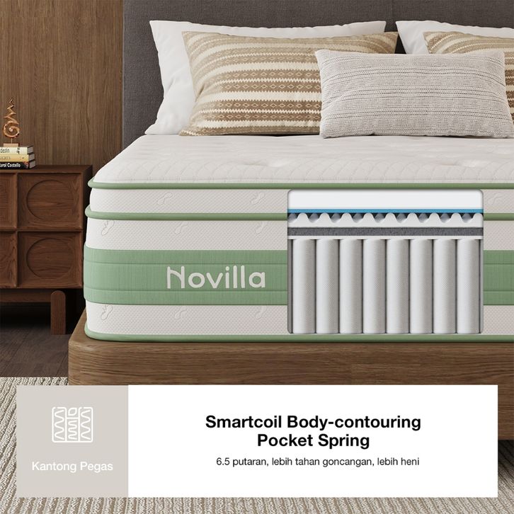 [Mall] Novilla Kasur Pegas Pocket Triple Cooling System Ice Silk Memory Foam Springbed 30cm Bonus Bantal