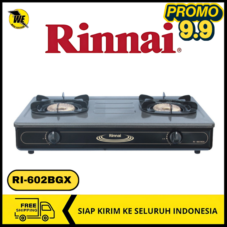 KOMPOR GAS 2 TUNGKU RINNAI RI-602BGX STAINLESS JUMBO MURAH ORIGINAL OFFICIAL STORE