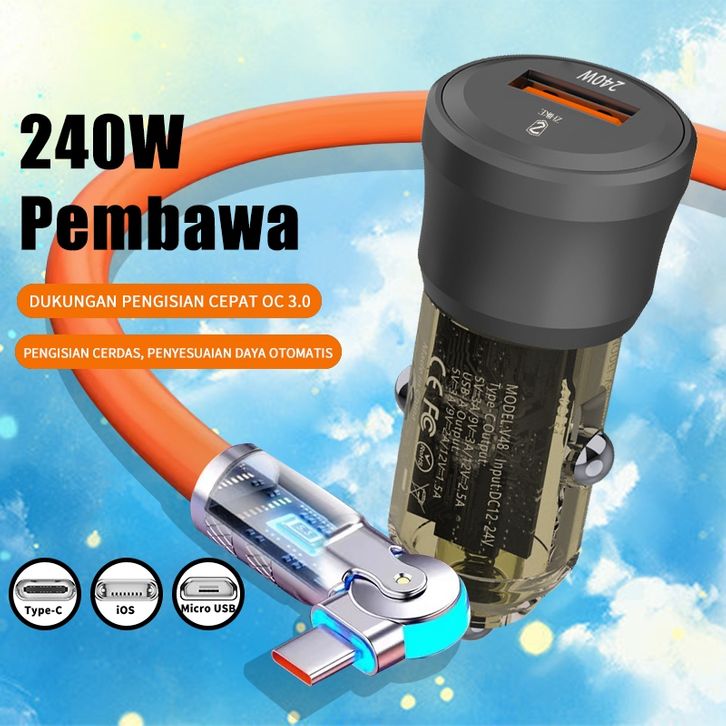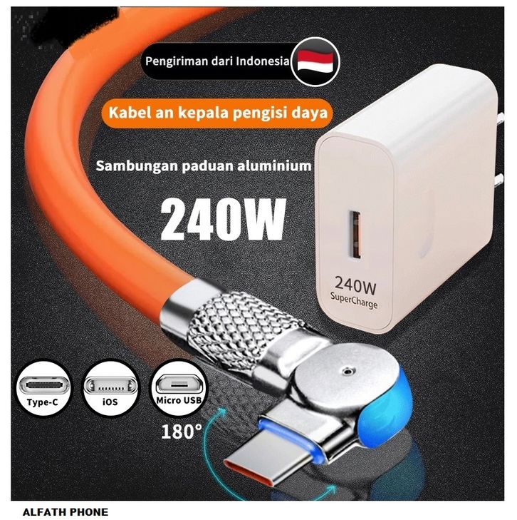 KABEL DATA TYPE C FAST CHARGING CASAN MICRO USB IOS LIGHTNING DENGAN ADAPTOR 240W ROTASI 180° PANJANG 1,5 METER