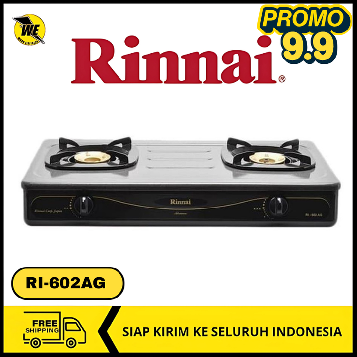 [Mall] Rinnai RI-602AG Kompor Gas 2 Tungku Stainless Jumbo Murah Original Official Store