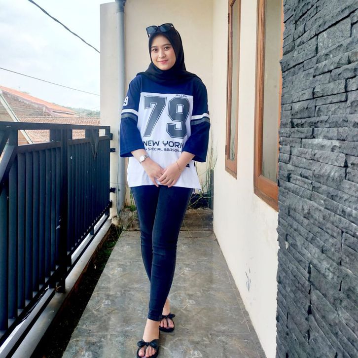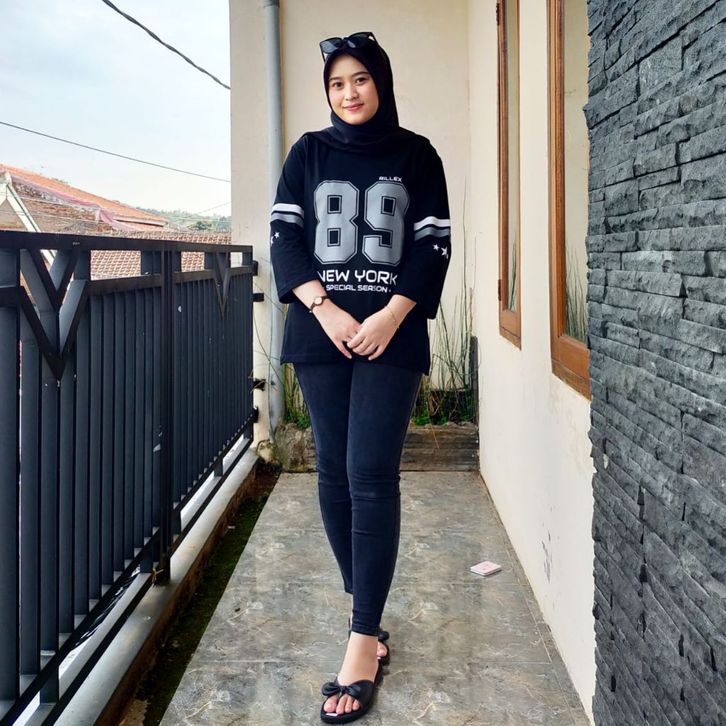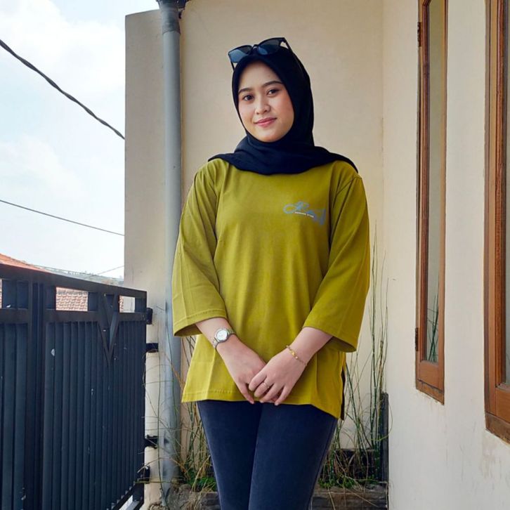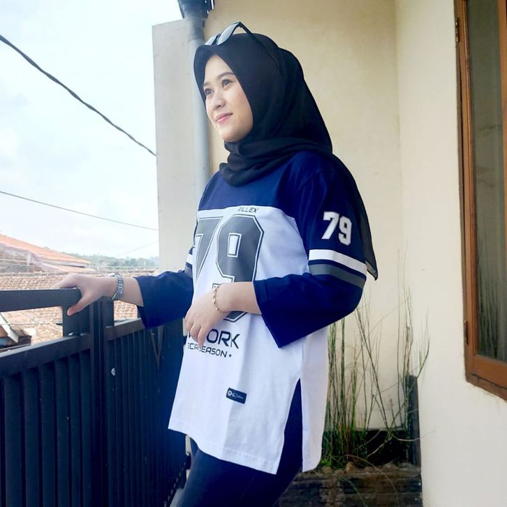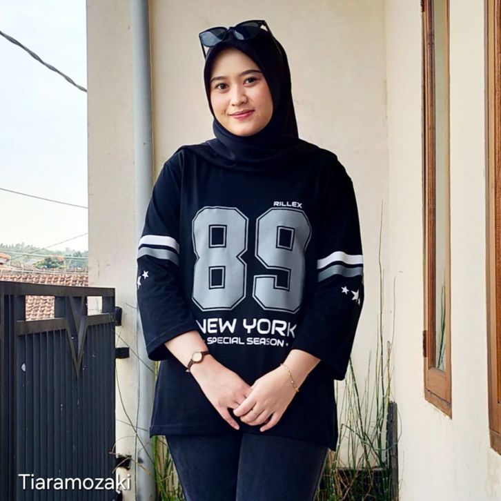 Kaos Wanita Oversize Lengan 7/8 Motif Number Atasan T-Shirt Sporty Bahan Katun Kombad 20s Premium Cocok untuk Santai