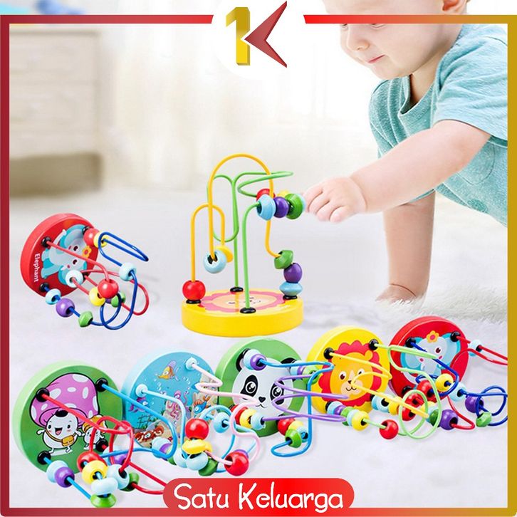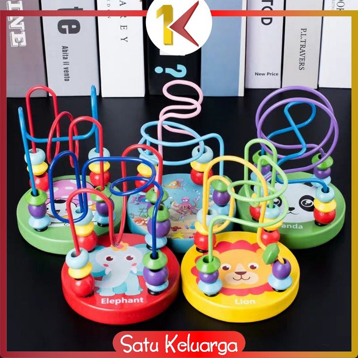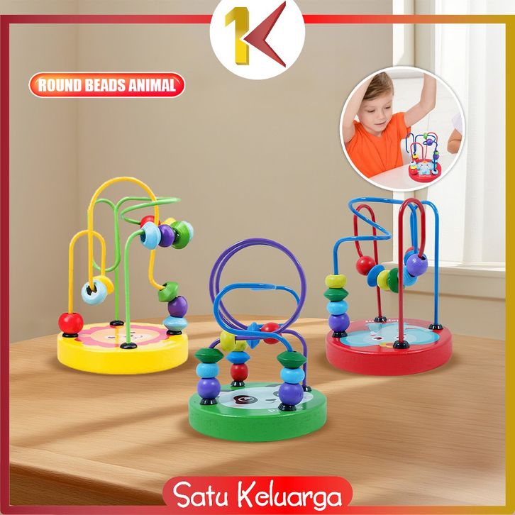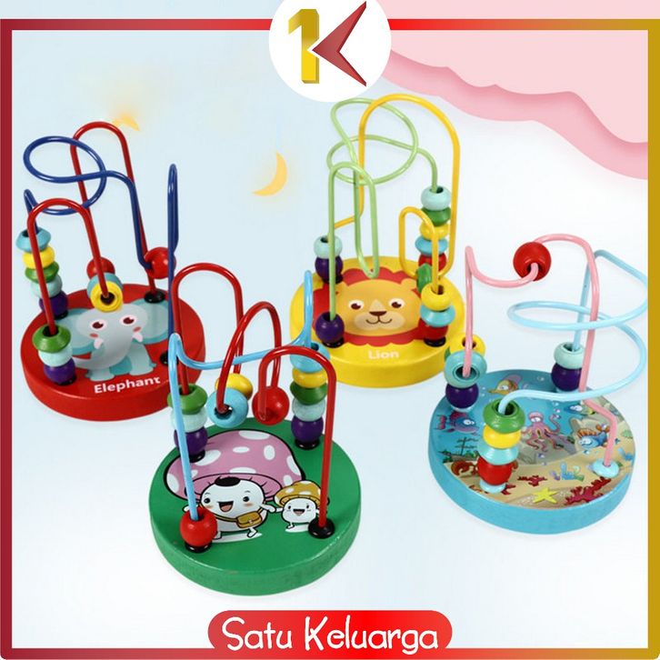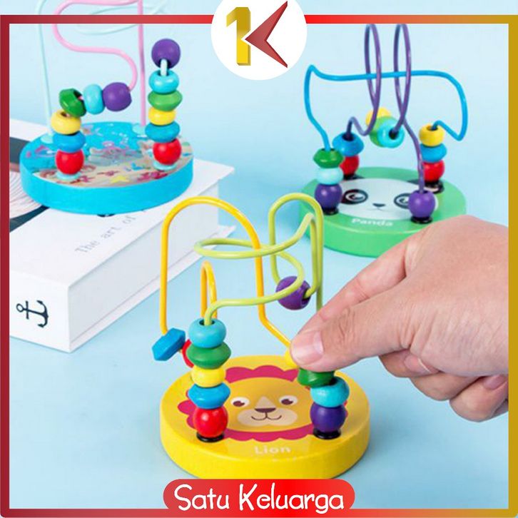 SK-M333 Mini Round Beads Game Mainan Kayu Anak Karakter Animal Lucu / Mainan Edukasi Anak Wire Maze game / Mainan Alur