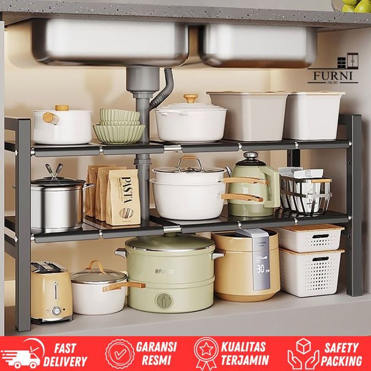 Diskon Promo Rak dapur stainless steel yang dapat ditarik di bawah rak panci wastafel rak multifungsi Termurah