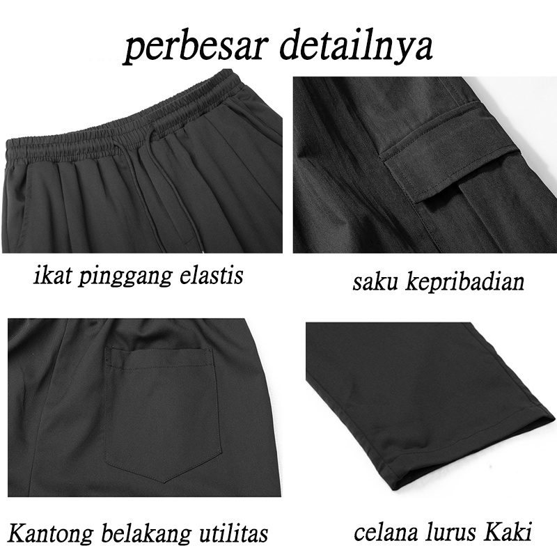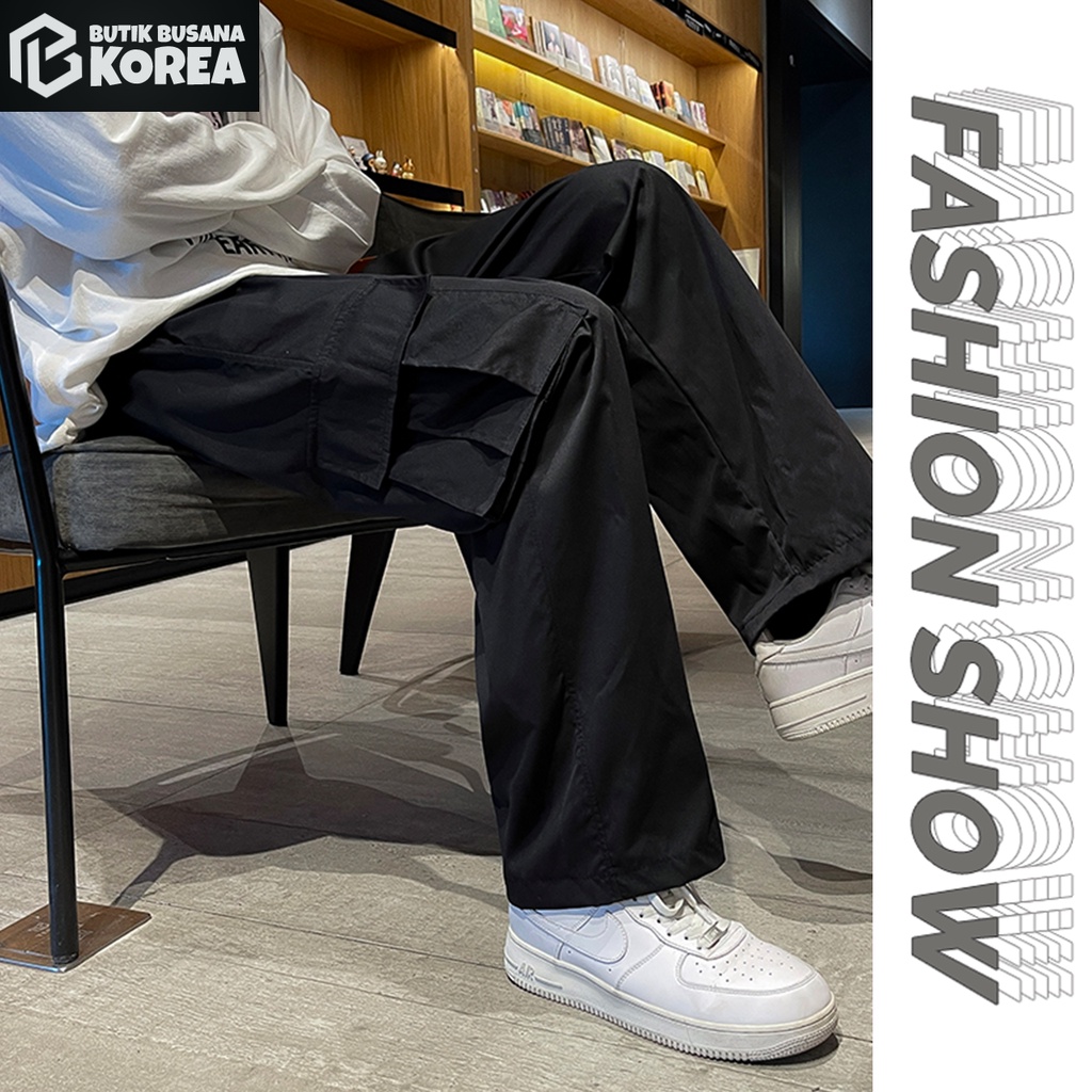 CARGO PANTS PRIA IKAT PINGGANG ELASTIS CELANA CARGO KOREA CELANA BANYAK KANTONG PRIA CELANA