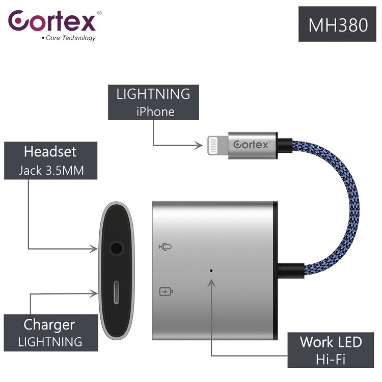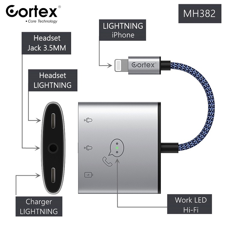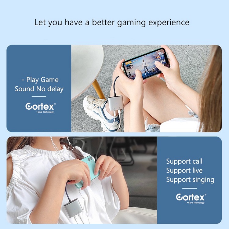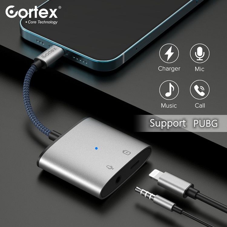 CORTEX - SPLITTER - 2IN1 3IN1 - LIGHTNING TO JACK CONVERTER - PUBG CHARGER + OPEN MIC - TELEPON