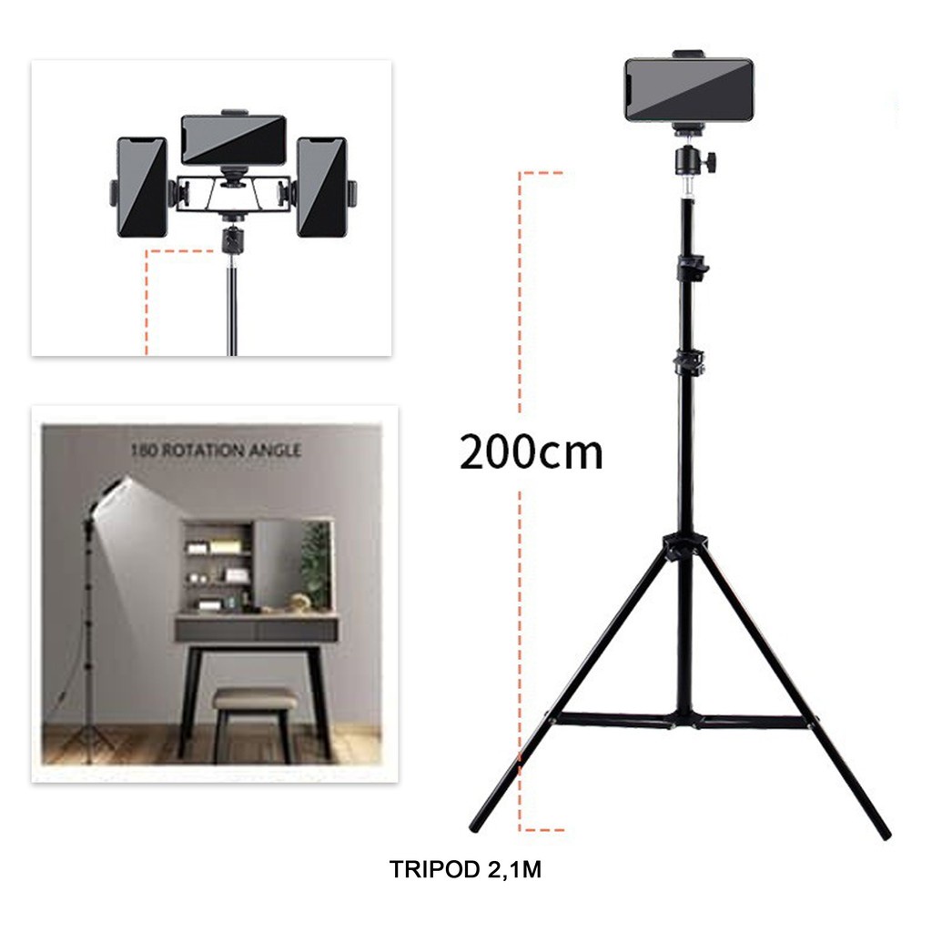 PAKET LAMPU RING LIGHT 26CM LIVE DAN TRIPOD 2.1 METER FREE 3 HOLDER HP LIVE STUDIO STREAMING STRIMING JUALAN BESAR
