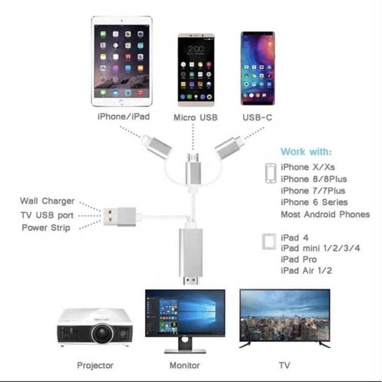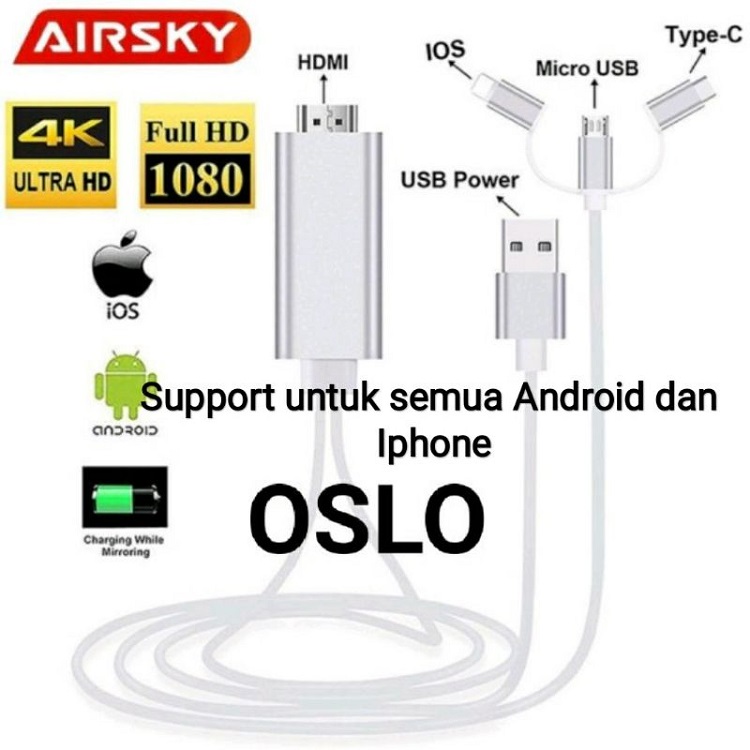 KABEL MHL 3 IN 1 HP ANDROID IOS KE TV HDTV HDMI MICRO USB TYPE C IPHONE LIGHTNING CONVERTER