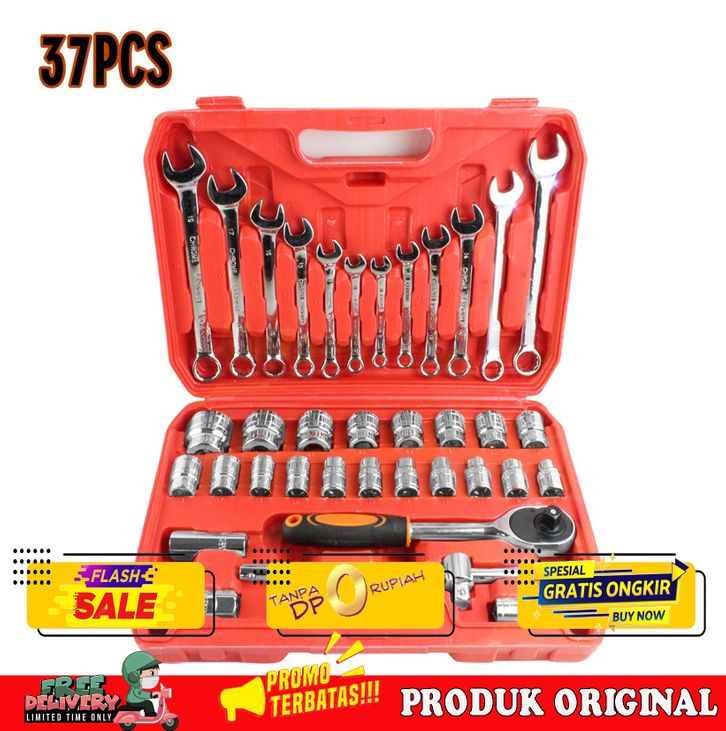 DISKON/ ALLEFIX KUNCI SET SOCKET WRENCH PAS SOK SET 37 PCS 1/2INCH CAR REPAIR TOOL KUNCI INGGRIS-6591
