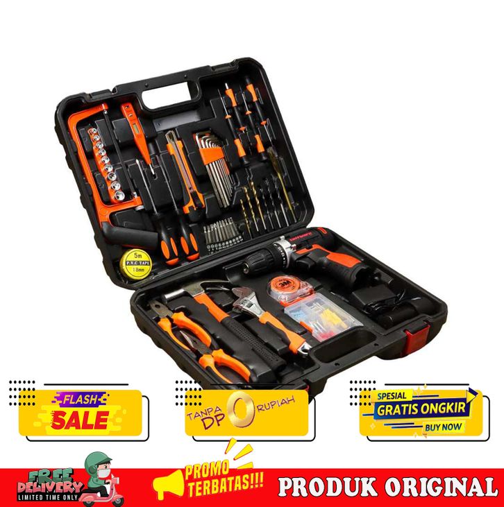 DISKON/ ALAT PERKAKAS SET LENGKAP BOR LISTRIK PALU TANG OBENG KUNCI PAS 102 IN 1 TAFFWARE TZ168