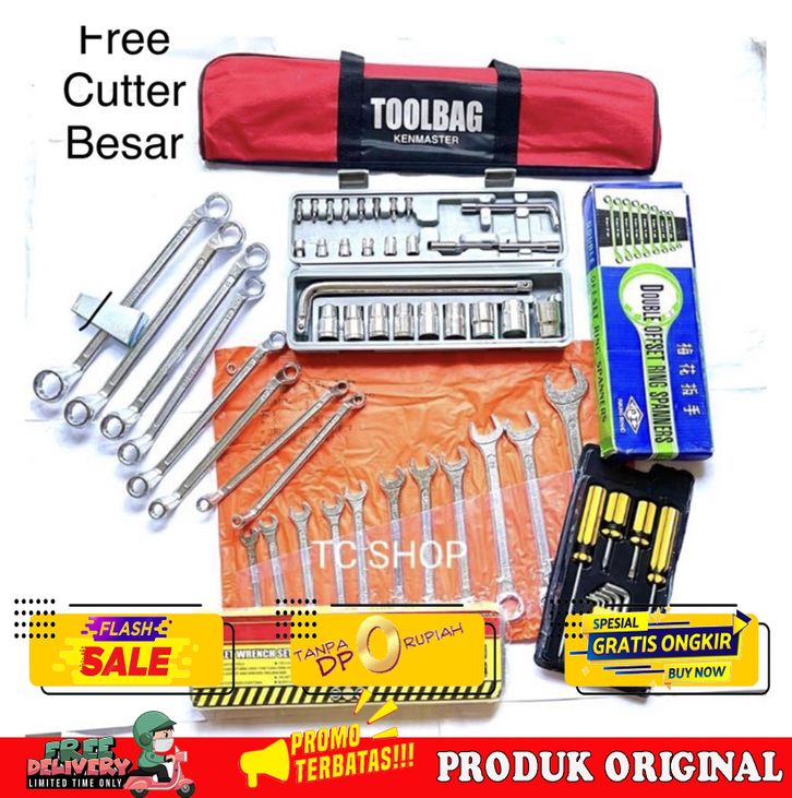 DISKON/ PAKET KUNCI RING PAS SET + KUNCI SOK 27 PCS + KUNCI RING SET + OBENG SET + KUNCI L SET