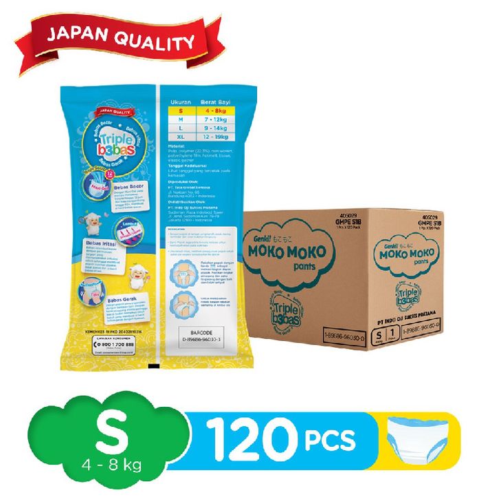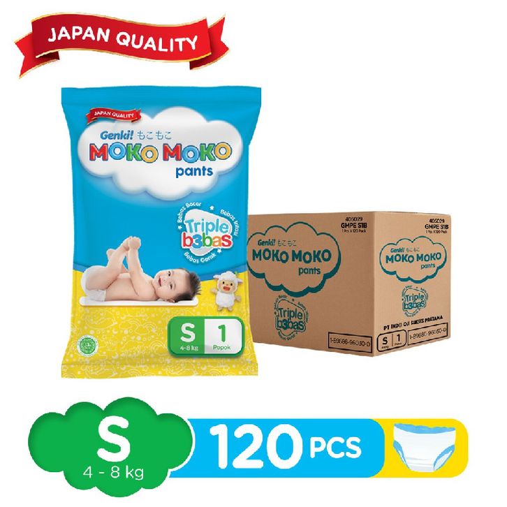 Popok Pampers Pempes Genki Moko Moko Pants S 1 Renceng (120 pcs) Tipe Celana 1 Dus Termurah