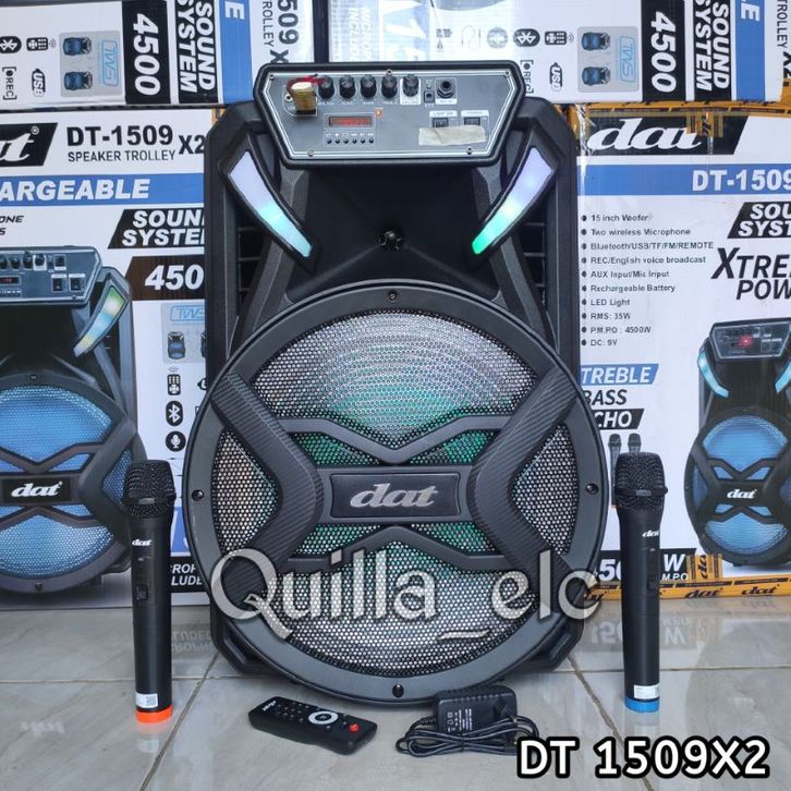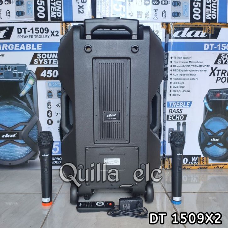 Speaker Portable 15 inch DAT DT 1509 X2 Free 2 Mic Wireless