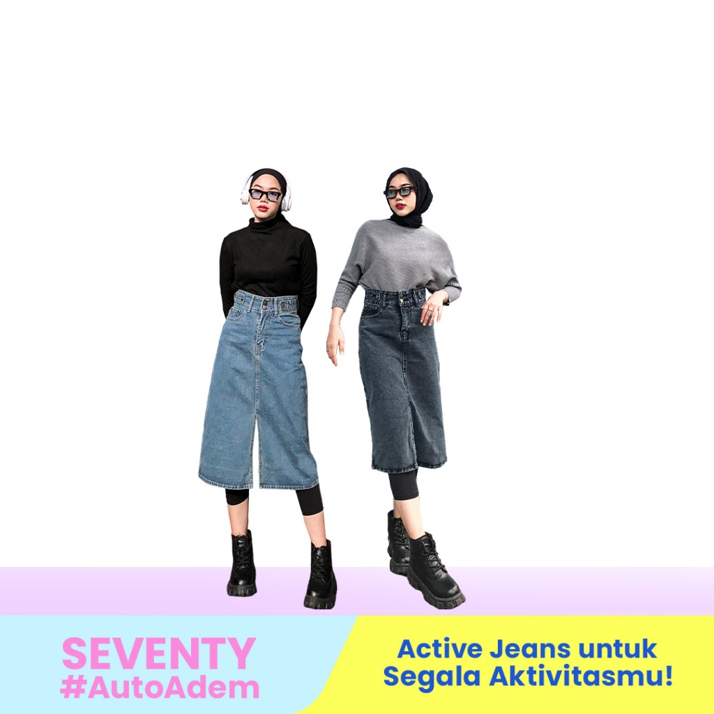 ROK JEANS JINISO WANITA HIGHWAIST LONG SKIRT SLIT SEVENTY DENIM PANJANG VOL. 1 TERBARU