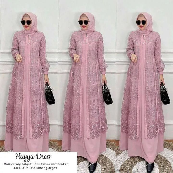 Dress Pesta Brukat Kondangan Hayya Dress Ceruty Babydoll Full Puring Gamis Pernikahan Warna Green Sage Baju Gamis