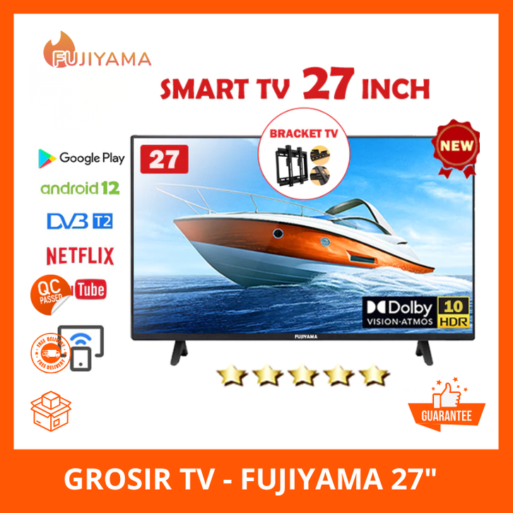 TV ANDROID FUJIYAMA 27 25 24 22 21 INCH FREE BRACKET SMART TV OS ANDROID 12.0 FHD DOLBY AUDIO GOOGLE PLAY YTB MURAH