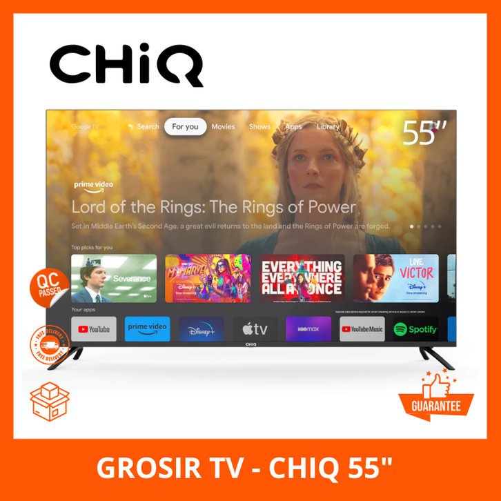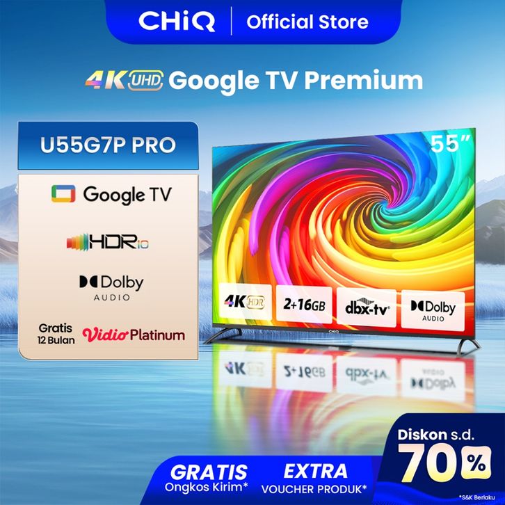 TV CHIQ 55 INCH SMART GOOGLE TV 4K UHD-HDR10+DBX DOLBY AUDIO U55G7P PRO MURAH BERKUALITAS TANPA DP BUNGA 0 GARANSI