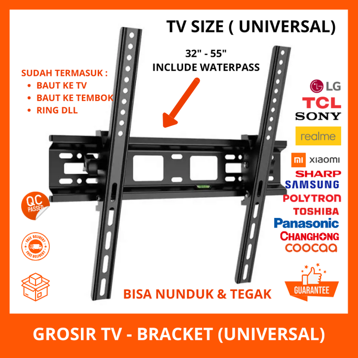 BRACKET TV LED LCD 55 50 43 42 40 32 24 21 INCH BISA SEMUA MERK TEBAL IMPORT QUALITY BISA NUNDUK TEGAK BREKET BRAKET