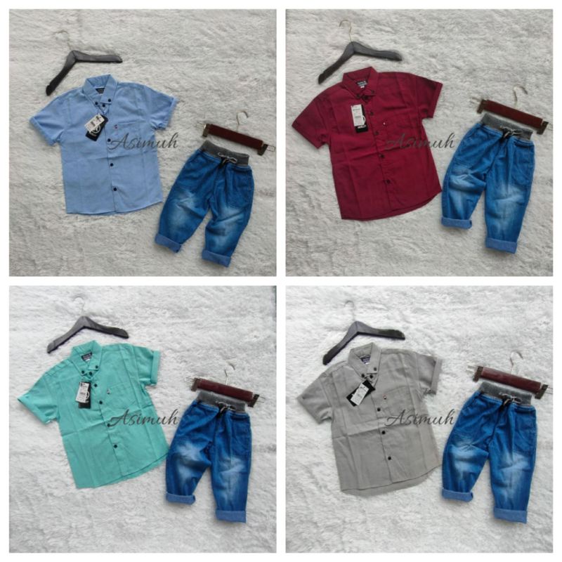 PAKAIAN SETELAN KEMEJA CELANA PANJANG JEANS POLOS ANAK LAKI LAKI 1 2 3 4 5 6 7 8 9 TAHUN