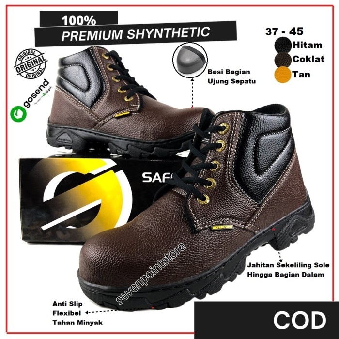 SEPATU SAFETY BOOTS ORIGINAL SEPTI KERJA SEFTY SHOES SPATU PROYEK PRIA - COKELAT, 37