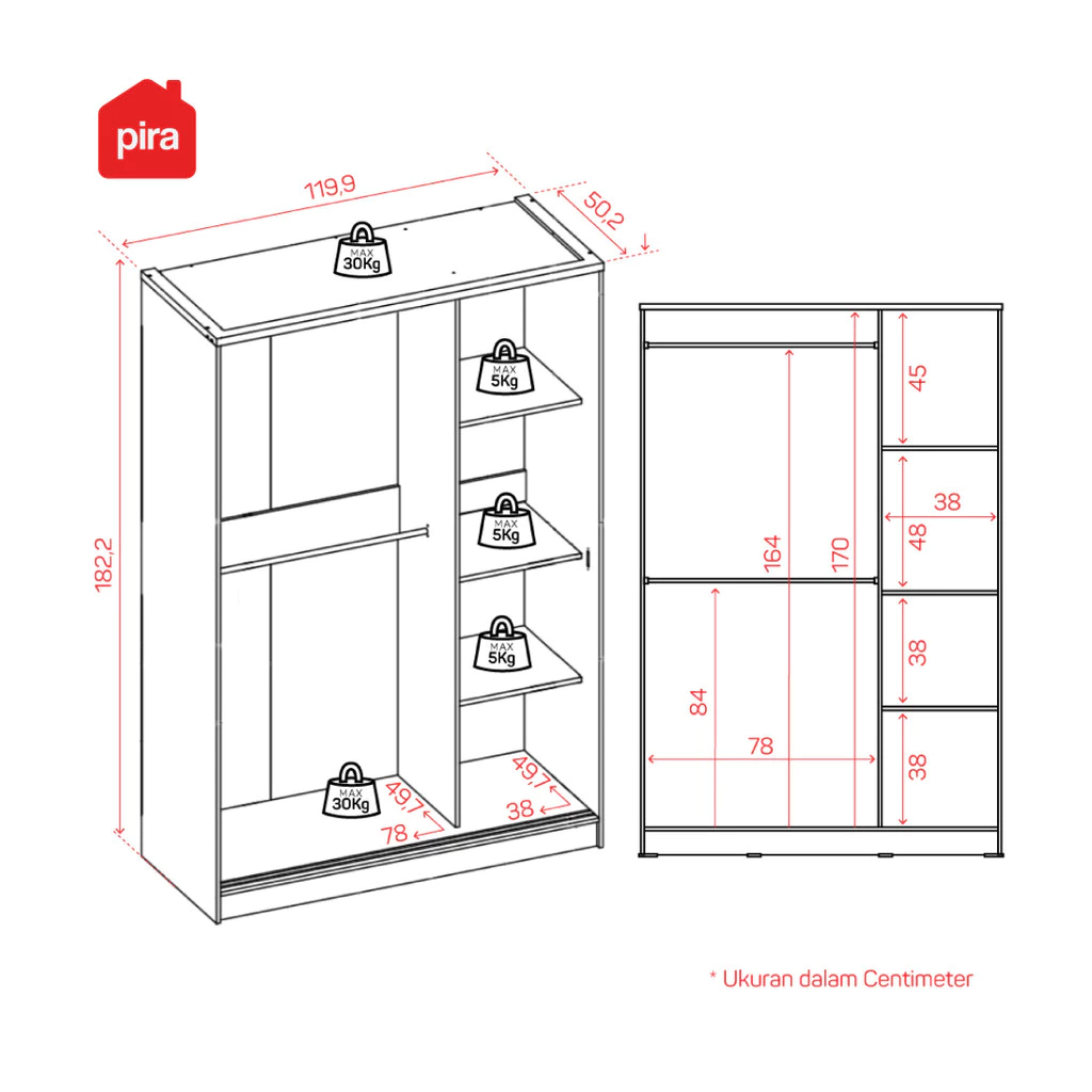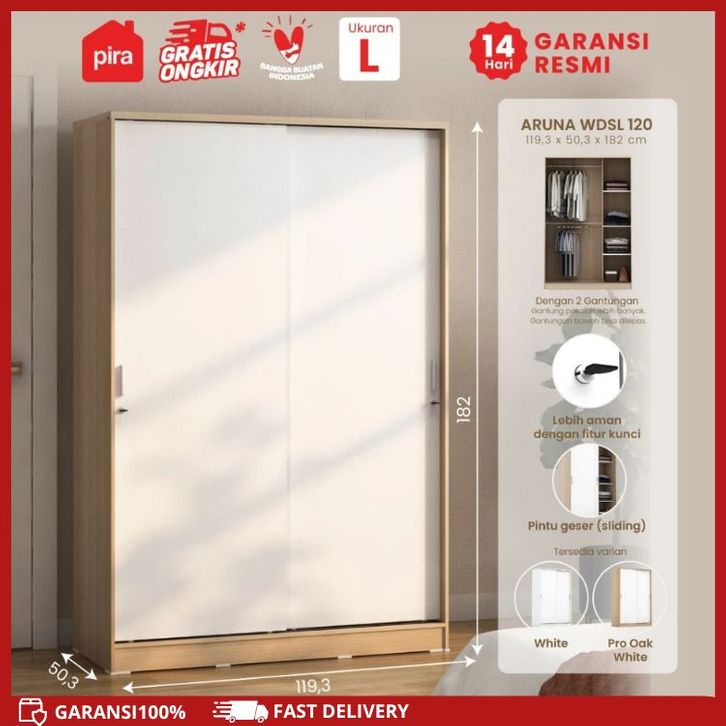 Lemari Pakaian Pintu Geser / Sliding Pira Metropolis OX Aruna WDSL120 A Jumbo