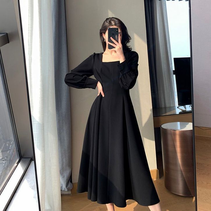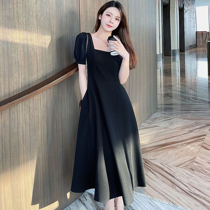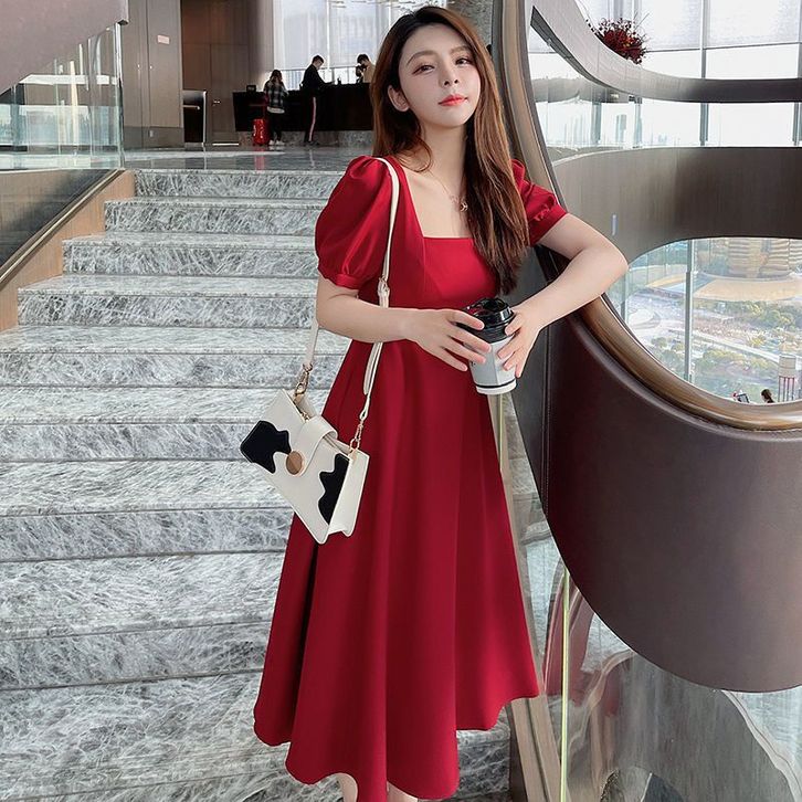 Dress Wanita Midi-Dress Pesta/Natal Korean Square Neck Dress Premium Polyster (Bisa Stretch)