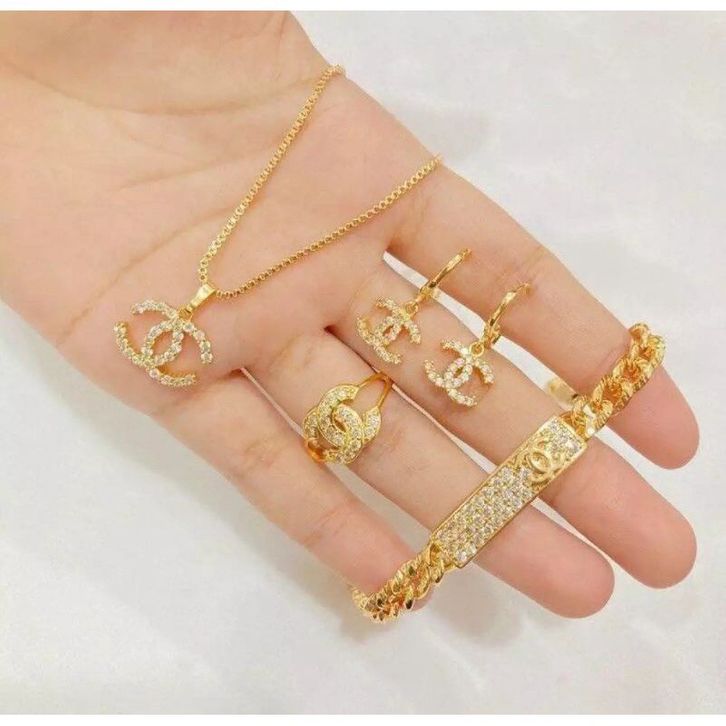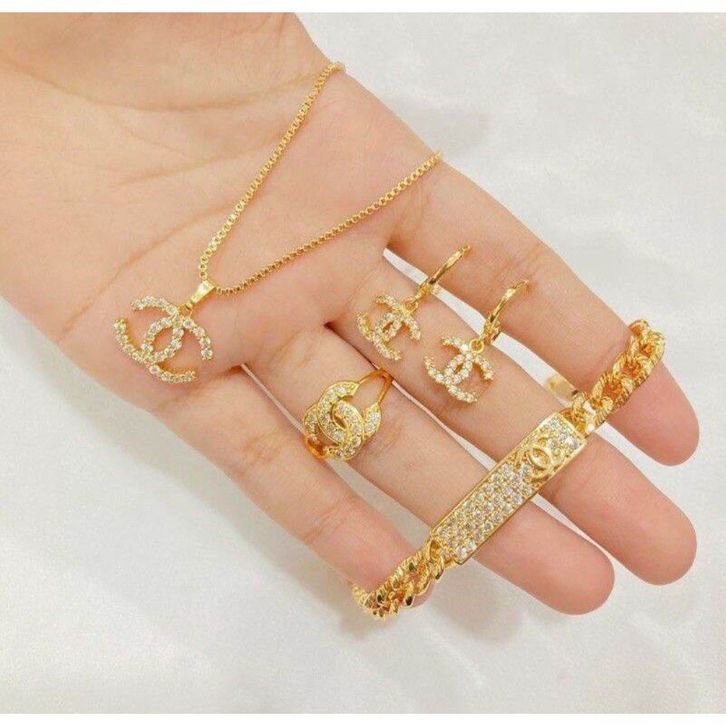 Set perhiasan titanium motif CH terbaru perhiasan titanium asli 1 set murah