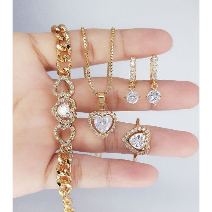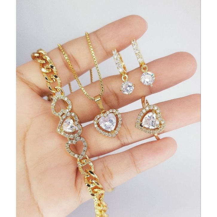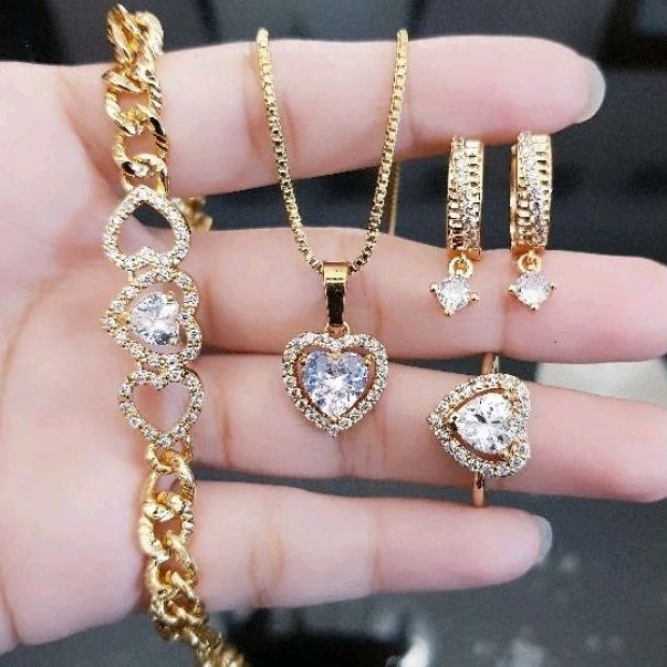 Set Perhiasan Wanita Xuping Motif Love Hati Permata A15011 Mewah Set Perhiasan Satu Set Perhiasan Titanium