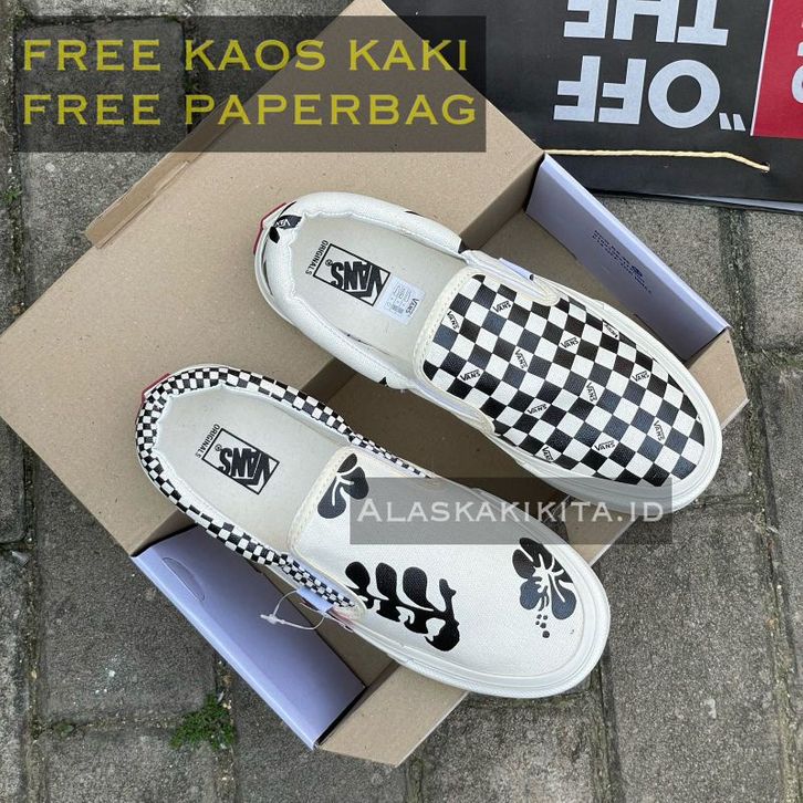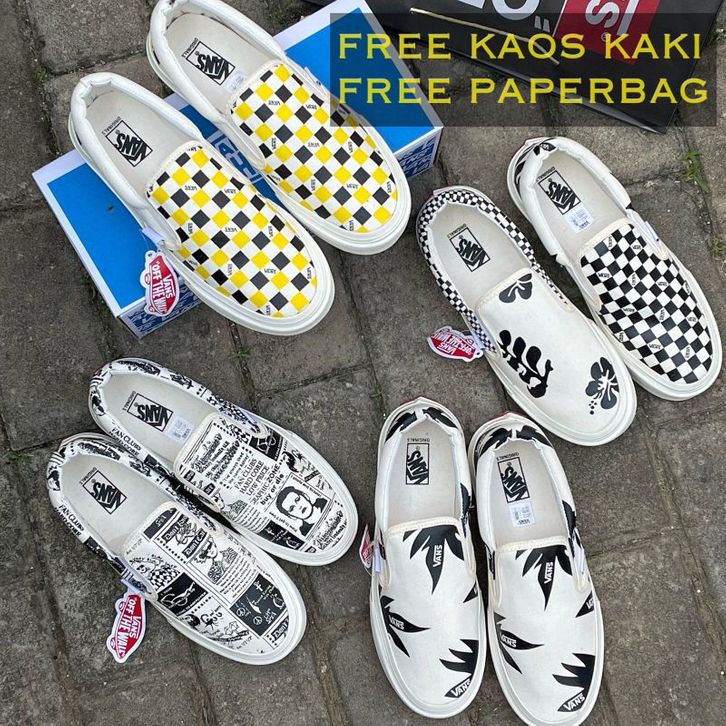PROMO sepatu pria vans slip on / checkerboard x porter yoshida / slip on og mono + kaos kaki pr
