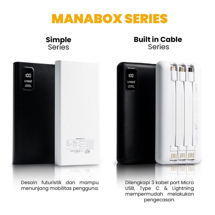 [Star] PowerBank Uneed Powerbank Manabox Series 10000mAh 20000mAh 30000mAh Quick Charge 3.0 PD 22.5w Terbaru