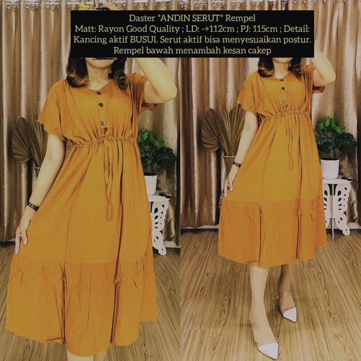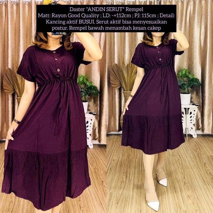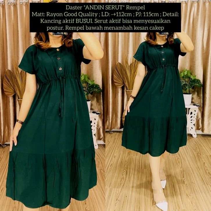 BAJU DASTER DRESS BUSUI WANITA ANDIN KIMONO RUFFLE RAYON PREMIUM SERUT KERUT KANCING DEPAN FULL BATIK PEKALONGAN DASTER