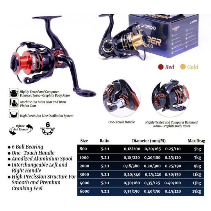 Reel daido xaber 6 bb 800 1000 2000 3000 4000 6000