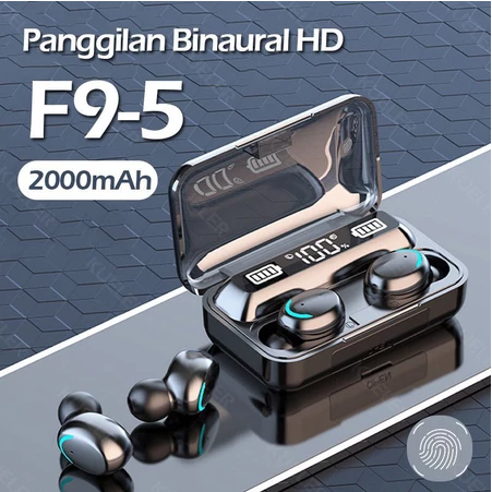 Headset Bluetooth F9 5 Full Bass Powerbank 2200 Mah TWS Wireless Earphone Stereo Original